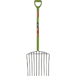The AMES ensilage fork is used for transferring manure, mulch and other loose material. The light-duty, 10 tine welded head is mounted to a 30 in hardwood handle with poly D-grip for strength and durability.