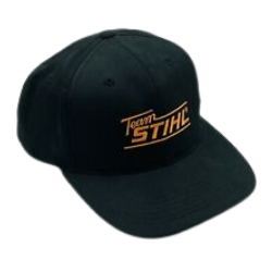 Black twill cap that displays the Team STIHL logo. Adjustable plastic snap back closure. Embroidered. Imported.