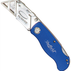 The Sheffield Utility Series 12113 ultimate Lock Back utility knife features a one-hand opening operation for convenience as you cut through obstacles such as paper, cardboard and more. This Sheffield utility knife also boasts a quick-change mechanism for a quick and easy blade replacement procedure, using standard utility knife blades. It features a lightweight aluminum handle for ease of use and includes a belt clip for easier carrying. You're all set to cut through twine, boxes and more with ultimate ease.